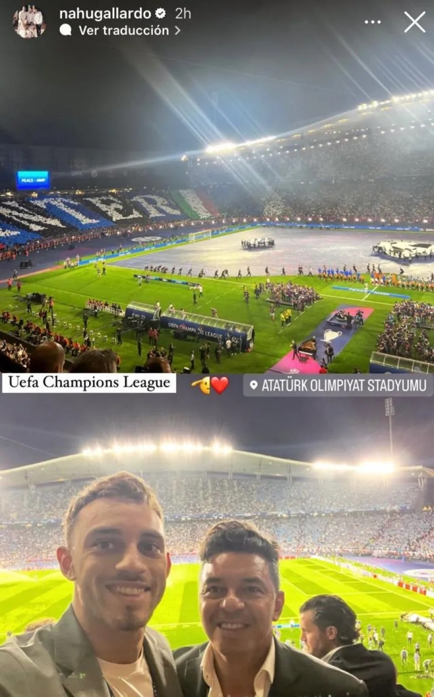 Junto a su hijo Nahuel, quien fue justamente el encargado de postear en sus redes sociales la foto, el Muñeco siguió la definición en la que se coronó su ex-dirigido Julián Álvarez en el Estadio Atatürk Olimpiyat de Estambul. Tal cual había sucedido el año pasado en la final que protagonizaron Real Madrid y Liverpool en el Stade de France, ahora Gallardo viajó hacia Turquía para volver a vivir en vivo la disputa por la Orejona.