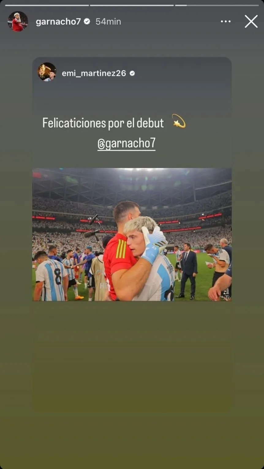 Si bien no tuvo chances de gol y se lo notó algo nervioso a la hora de la gambeta, su arma letal en tierras inglesas, Garnacho se mostró siempre activo, se asoció con Messi y se fundieron en un tímido abrazo tras el último silbato.