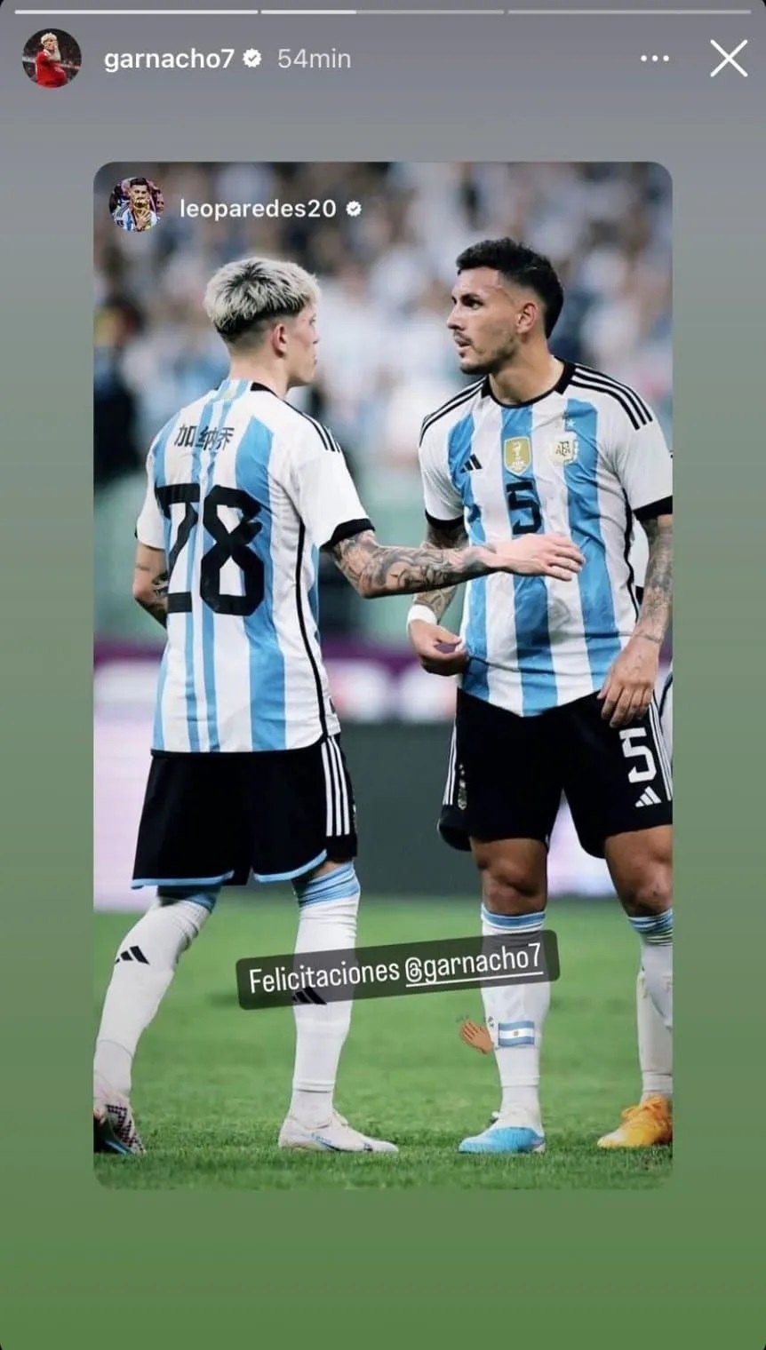 Antes de la media hora del complemento, ya con el resultado 2-0 a favor, el técnico Lionel Scaloni llamó al extremo de Manchester United y le cumplió uno de los grandes anhelos de su carrera. Platinado y con la camiseta N°28, ingresó por Nicolás González y se plantó en la banda izquierda del ataque.
