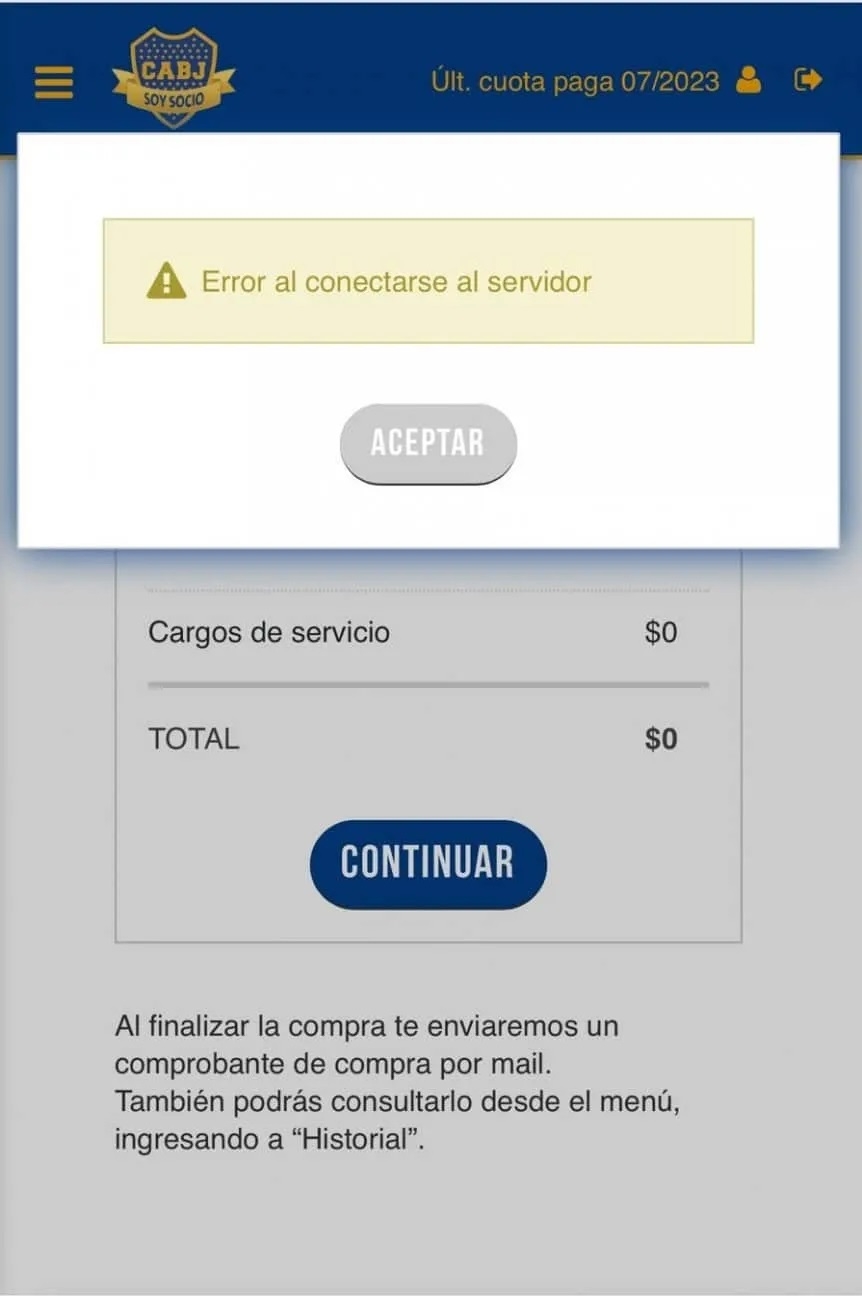 En las primeras horas tras el inicio de la venta la página del Xeneize estuvo caída por momentos debido al gran tráfico de usuarios y algunos hinchas reportaron fallas en redes sociales, como generalmente sucede cuando los simpatizantes intentan conseguir ubicaciones para los partidos de local. Los problemas ocurrieron principalmente a la hora de seleccionar la butaca y querer comprar, cuando un cartel arroja error del servidor. “Nunca me habilitó a comprar, pero ya se me terminó el tiempo”, es uno de los comentarios más repetidos en Twitter.