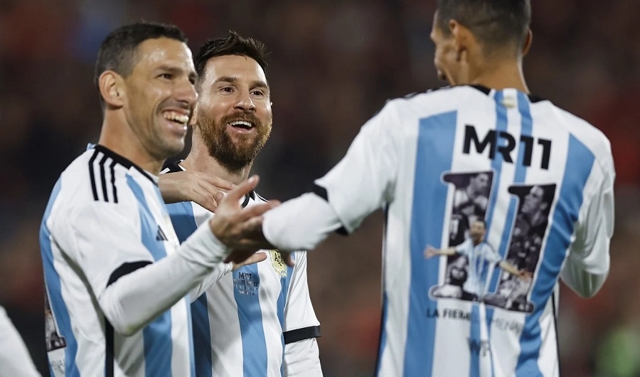 El anecdótico 7-5 en favor de la Lepra contó con un triplete de Lionel Messi, que disputó solamente el primer tiempo para la Albiceleste y recibió una de las más grandes ovaciones de la noche. Maxi Rodríguez no solamente se dio el gusto de marcar para el combinado nacional sino también para el rojinegro y gritar los goles de sus hijas Alma y Aitana. También se anotaron en el marcador Gabriel Batistuta (en su regreso al Parque de la Independencia después de 30 años), Denis Rodríguez, Nacho Scocco -por duplicado- y el Cholito Posse.