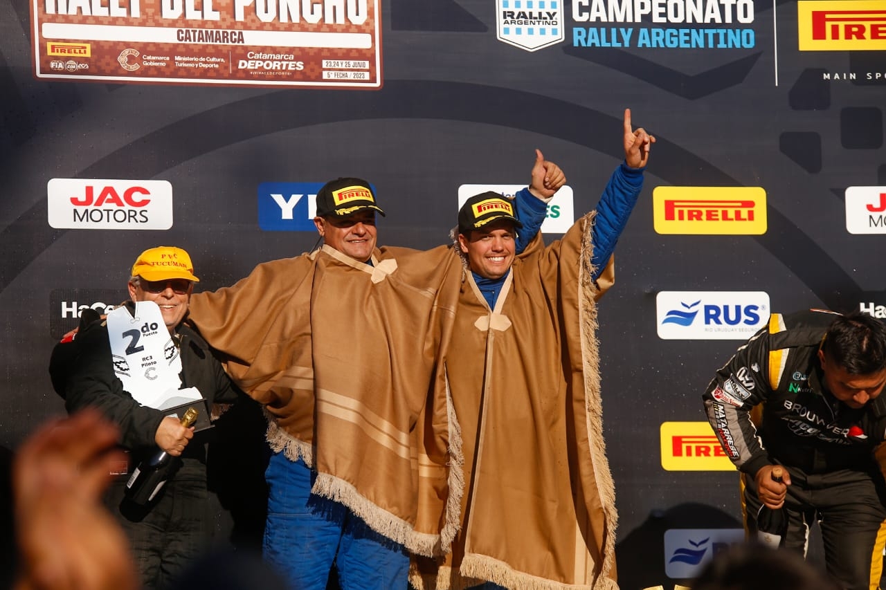 Tras un rally de ausencia en La Rioja, Juan Saraleguy (Peugeot) y Luis Gatica finalizaron segundos, mientras que el podio fue completado por el uruguayo Rodrigo Fialho (Renault). Su compatriota, Andrés Marieyhara (Peugeot) fue cuarto en la general, la Etapa 2 y el Power Stage, lo que le permitirá sumar puntos clave para batallar en el certamen contra Martín Maisonnave (Peugeot), quien no pudo reengancharse hoy.
