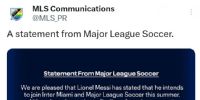 Comunicado de la cuenta de Relaciones Públicas de la MLS sobre Messi