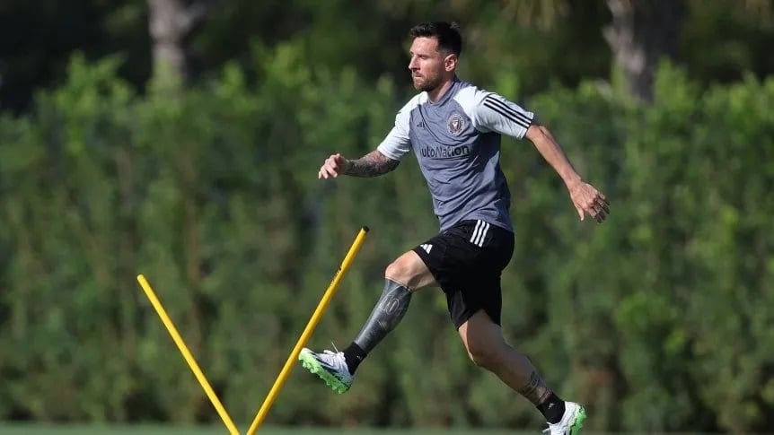 A pura sonrisa junto a Busquets, bajo la lluvia, Messi se mostró listo para su debut oficial con el Inter Miami. La Pulga realizó el clásico "loco" a una y dos pelotas y desplegó toda su habilidad que sufrieron el volante central, Leonardo Campana y Kamal Miller. Además, realizó ejercicios de movilidad bajo la atenta mirada del Tata Martino y de David Beckham.