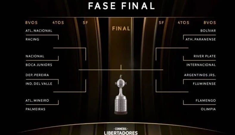 Rodaron las bolillas en la sede de la Conmebol en Luque, Paraguay, y quedaron definidos los octavos de final de la Copa Liberadores, como así también el cuadro definitivo rumbo. Boca y River, que jugarán con Nacional de Montevideo e Inter de Porto Alegre, respectivamente, en la próxima fase, solo podrán cruzarse en la gran final en el mítico Maracaná de Rio de Janeiro.
