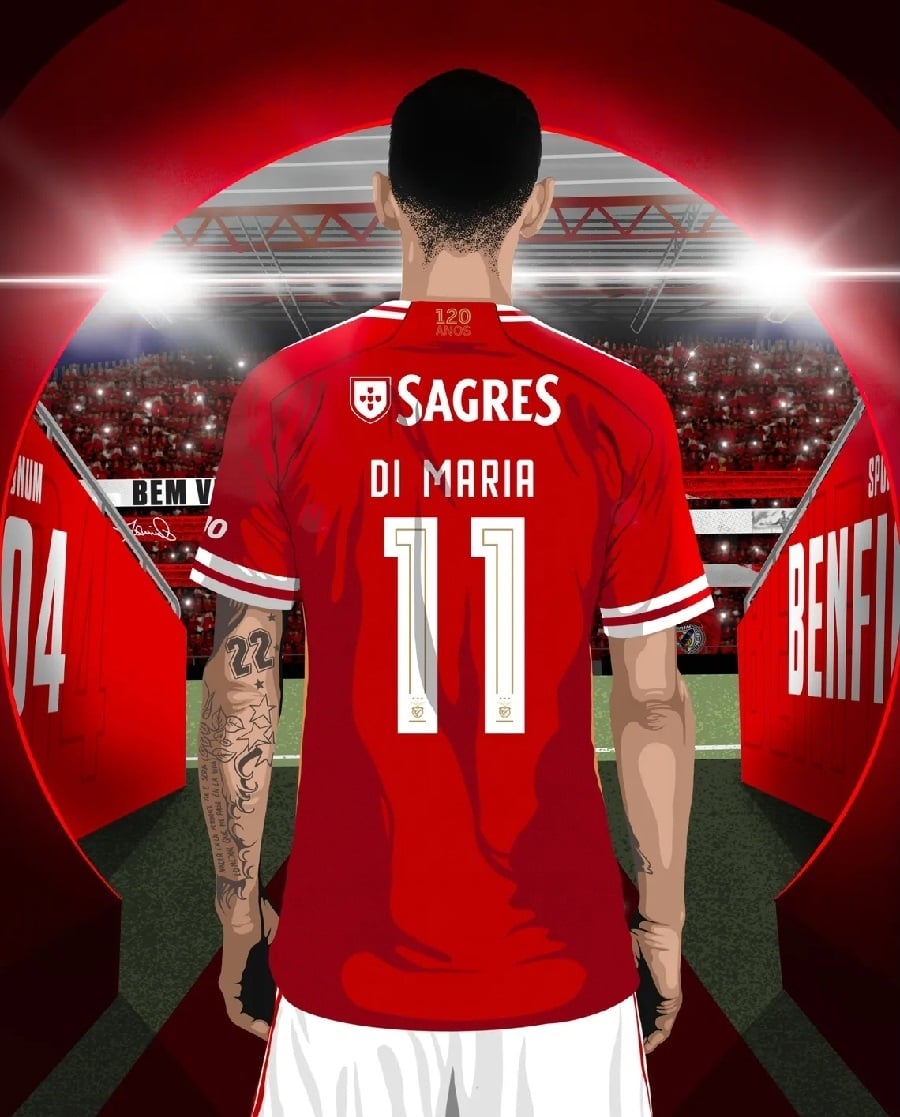 El club hizo oficial su incorporación con un video en el que de fondo se escucha un tango, y luego con un diseño en el que se lo ve a Di María ingresando al campo de juego del Estadio Da Luz, donde las Águilas juegan de local, con la leyenda 'De vuelta en casa'. Usará la cmiaseta número 11.