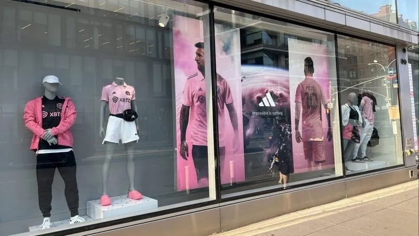 A falta de varios días para la presentación oficial de Messi como jugador de Inter Miami, uno de los locales insignia de Adidas en Nueva York ya luce cartelería con el capitán de la Selección Argentina enfundado en los colores de su nuevo equipo. De hecho, el arribo de Messi significa tanto para la MLS como para la marca que sponsorea al futbolista y a la liga que decidieron cambiar su slogan de "Impossible is nothing" ("Nada es imposible", en inglés) a "Impossible is coming" ("Lo imposible está llegando").