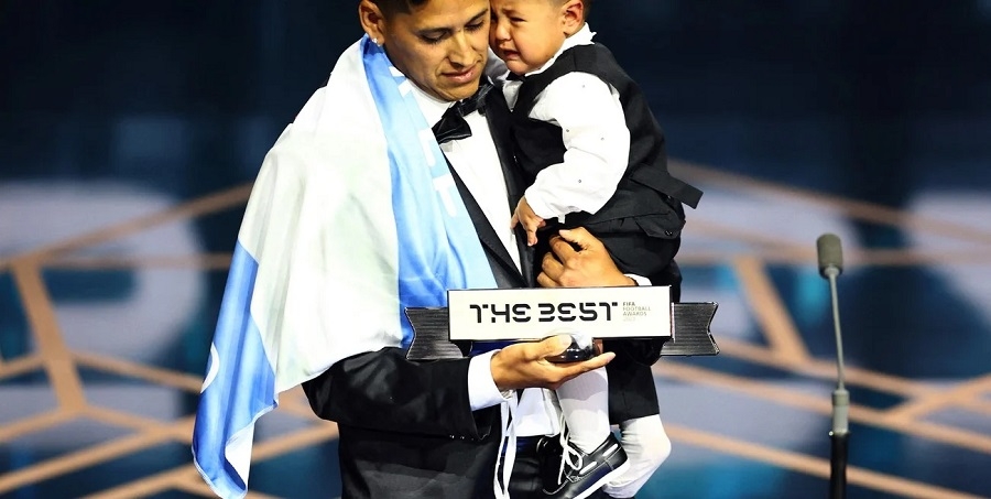 "La conmovedora escena reflejó la voluntad del aficionado de despertar en su hijo la pasión por el club desde pequeño", destacó la FIFA cuando reveló la terna en septiembre.