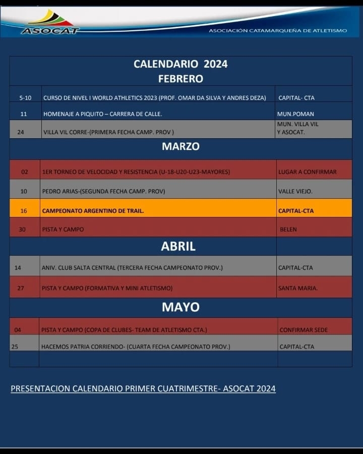 Finalmente agregó que "el Campeonato Argentino de Trail, ya está motivando a todos los atletas con un buen objetivo, por lo que, a pesar de la crisis, enfrentamos este desafío con el entusiasmo de siempre".