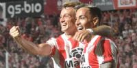 Una ráfaga de goles sobre el fin de la primera etapa sentó las bases para lo que sería goleada del dueño de casa, primero de una recuperación en campo contrario donde Puebla remató casi que en el área chica sobre Devecchi y Suárez estiró esa ventaja pocos minutos más tarde en un contraataque que inició sobre su propia línea de meta tras un mal centro por parte de un rival que se desesperaba por volver a las tablas en el marcador.