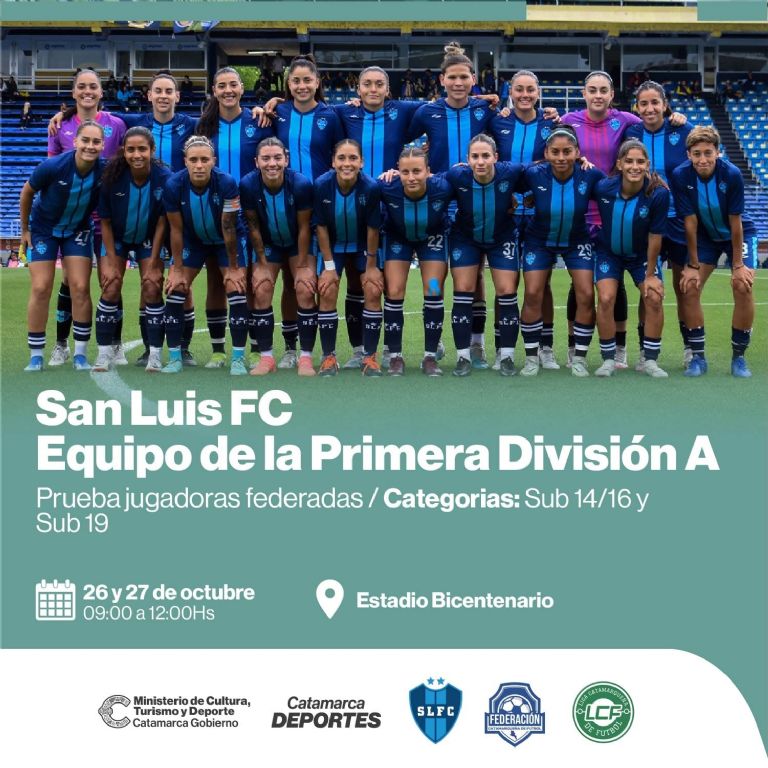 La evaluación se llevará adelante en el Estadio Provincial Bicentenario, los días sábado 26 y domingo 27, de 9 a 12 hs, en actividad que desarrollan conjuntamente la Secretaría de Deportes y Recreación, dependiente del Ministerio de Cultura, Turismo y Deporte, la Federación Catamarqueña de Fútbol y la Liga Catamarqueña de Fútbol, con su Departamento de Fútbol Femenino.