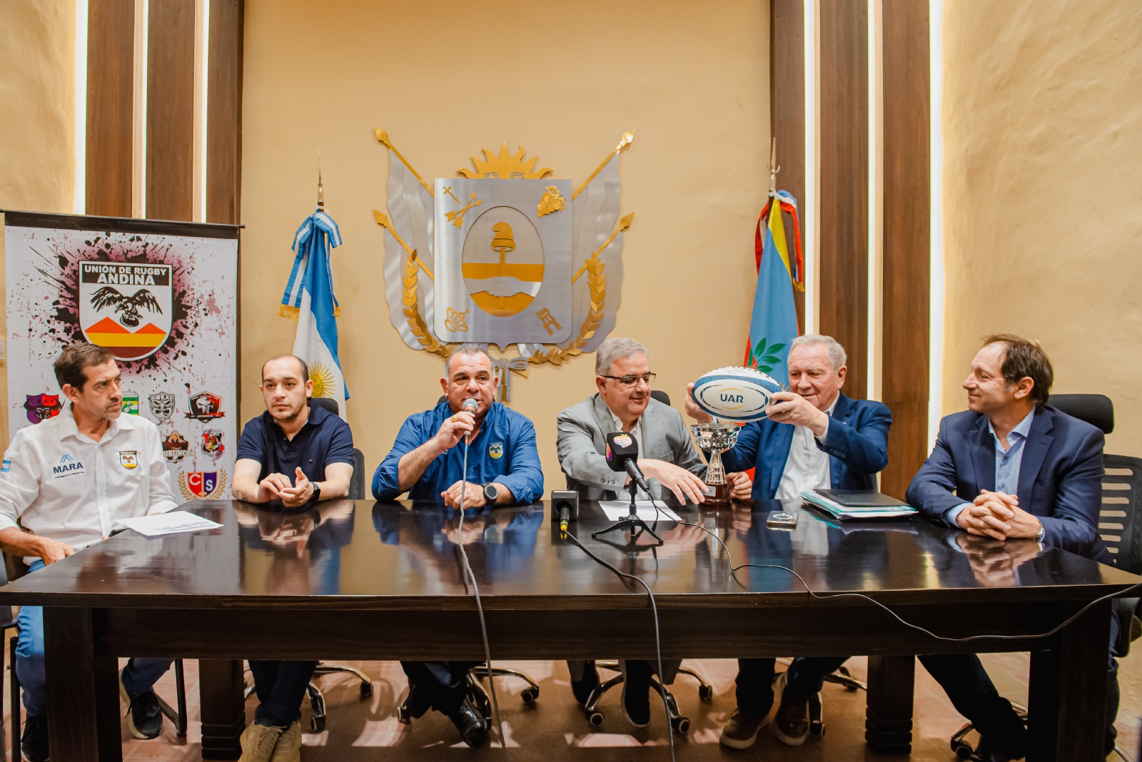 La presentación del evento deportivo, que cuenta con el aval de la Unión Argentina de Rugby, también tuvo la presencia del vicegobernador Rubén Dusso; el secretario de Deportes de la provincia, Guillermo Perna; el presidente de la Unión Andina de Rugby, Darío Almada; el secretario de la Unión Andina de Rugby, Carlos Coll; y el director técnico de la formación selectiva local, Octavio Torres.