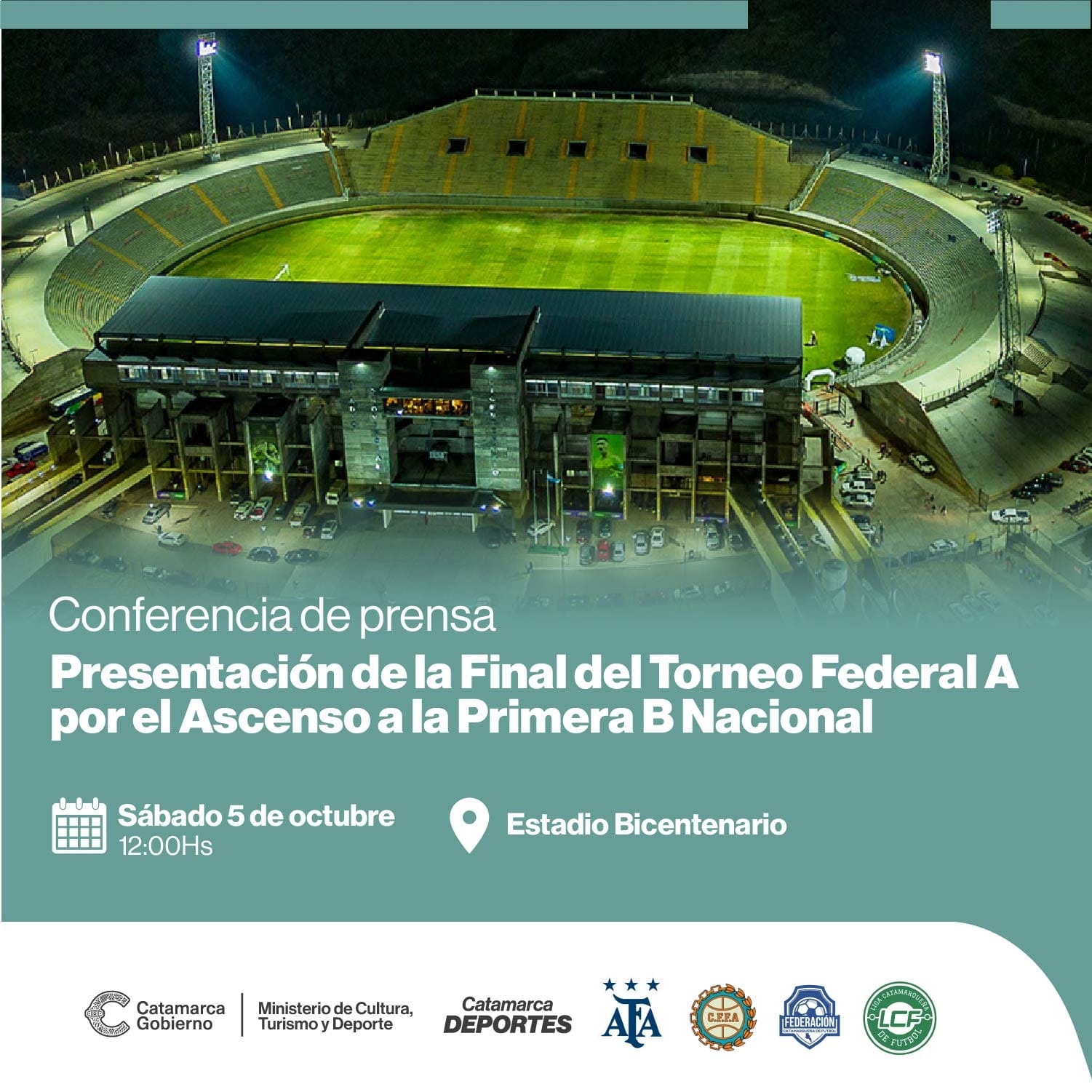 La misma contará con la presencia del secretario de Deportes y Recreación Guillermo Perna, la presidenta de la Liga Catamarca de Fútbol Sylvia Jiménez, y representantes de los clubes finalistas y del Asociación del Fútbol Argentino.