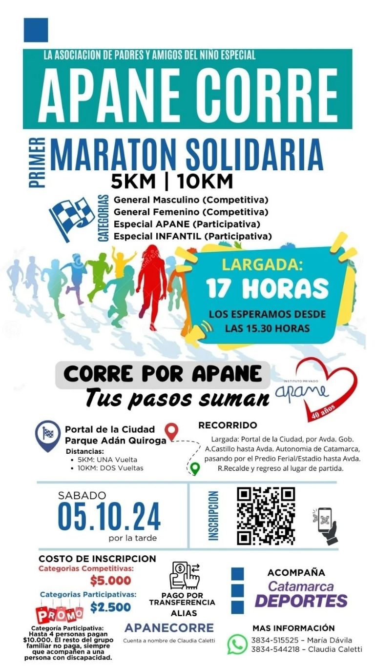 Las inscripciones cuestan 5.000 pesos para las categorías competitivas y 2.500 las participativas, con la “promo” de 10.000 pesos por cuatro personas. Y la salvedad, de que el grupo de personas, que acompañe a una persona con discapacidad no paga.