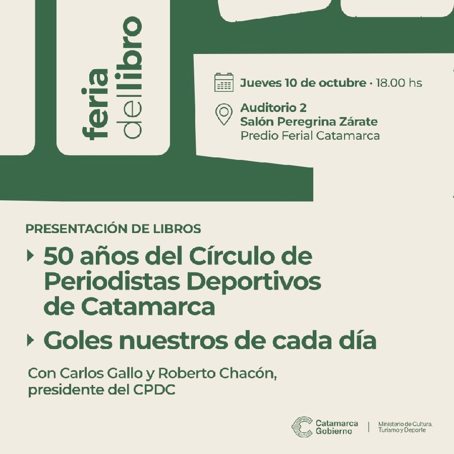 El evento cultural que reúne a escritores, editoriales y amantes de los libros, incluirá talleres y presentaciones de libros, entre los que estará la nueva edición del libro sobre el Círculo de Periodistas Deportivos de Catamarca con una publicación digital que refleja los 50 años de historia de la institución.
