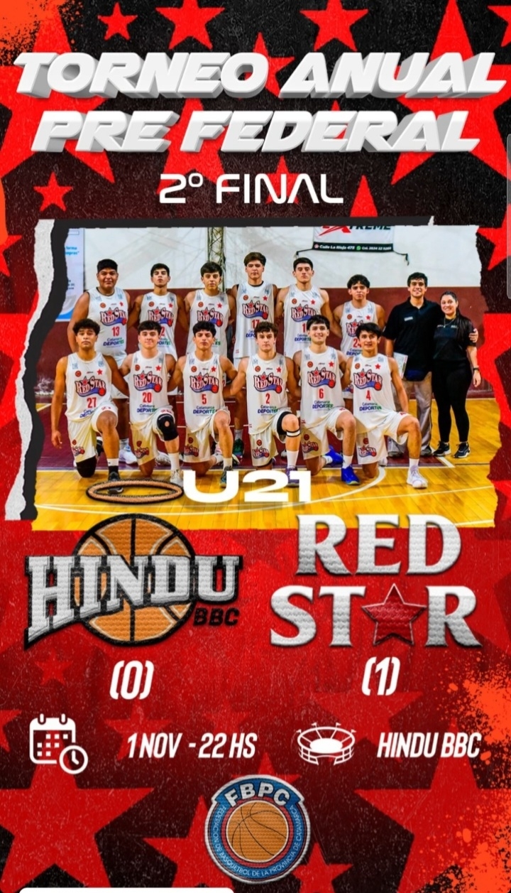 Luego del éxito la semana pasada, por 63 a 60 de local, merced a un parcial de 30 a 24 en la segunda mitad de juego, Red Star buscará completar la faena, cuando visite a Hindú desde las 22.00, en el segundo "chico" de las finales del U21 que organiza la Federación de Básquetbol de la Provincia de Catamarca.