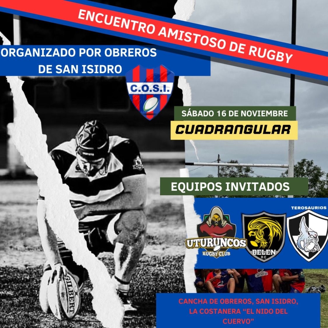 Este sábado 16 de noviembre, y organizado por el Club Obreros de San Isidro, se llevará a cabo una cuadrangular amistoso de rugby. Será a partir de las 14:00hs en el "Nido" de los "Cuervos" ubicado en La Costanera de Valle Viejo.