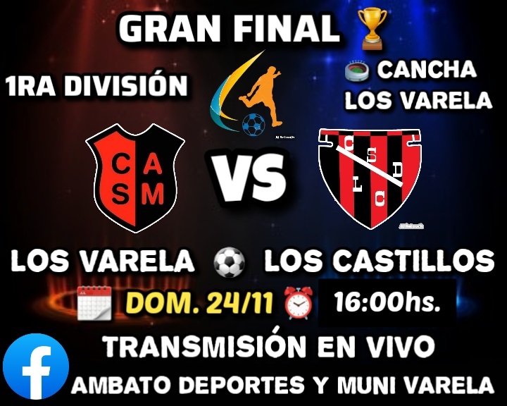 Y en el cierre de la jornada, desde las 16 hs., será el turno para la “gran final” de la 1ra. División entre los representativos del Club San Martín de Los Varela y el Club Social y Deportivo Los Castillo