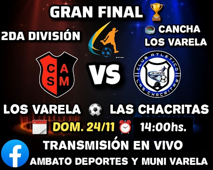 Con la transmisión en vivo de Ambato Deportes, este evento cuenta con el auspicio de la Municipalidad de Los Varela “Gestión Patricio Villafañez”.
