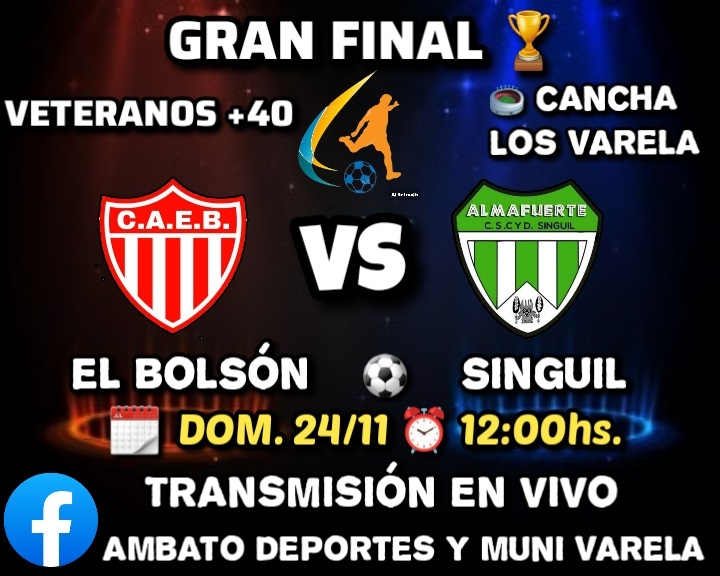 La acción se abrirá a las 12 hs., con la definición del título en la categoría Veteranos +40, entre los clubes Atlético El Bolsón y Almafuerte de Singuil.
