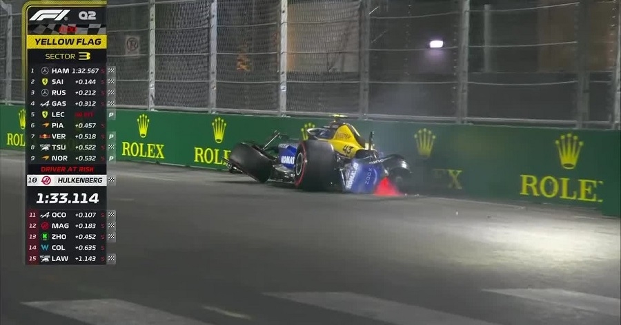 Venía peleando milésima de segundo a milésima de segundo para superar el corte, pero en la curva 16 tuvo un mal cálculo y estrelló su neumático izquierdo contra los muros. El impacto despidió el coche, que terminó golpeando nuevamente contra las barreras.