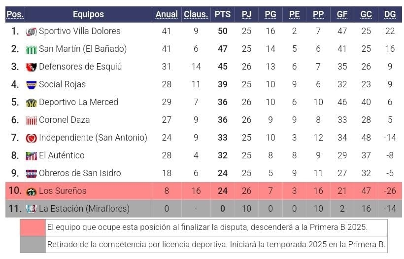 Últimos resultados en la “A”