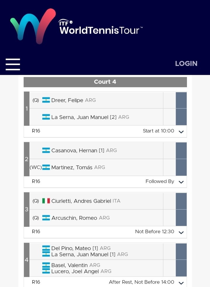 En tanto, en el dobles, al lado de su compañero de ruta: Mateo del Pino, números 1 del cuadro; el debut será hoy, desde las 14.00, también en cancha 4 del Luján Club, frente a Valentín Bassel y Joel Lucero. La Serna ganó 5 títulos en duplas en 2024, en Villa María, Punta del Este, Bragado y Córdoba con Del Pino, y en Lajeado (Brasil), al lado de Lautaro Midón.