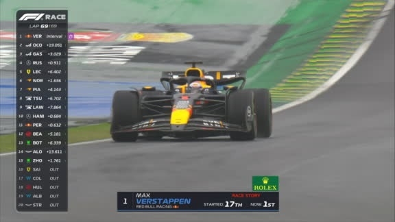 El piloto argentino salió desde el fondo de la grilla tras una complicada clasificación. Llegó a estar en el puesto 12, pero en la vuelta 32 se despistó y destruyó su Williams. El neerlandés tuvo un desempeño fenomenal y se encamina al título. Ocono y Gasly (Alpine), completaron el podio en Interlagos
