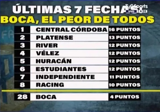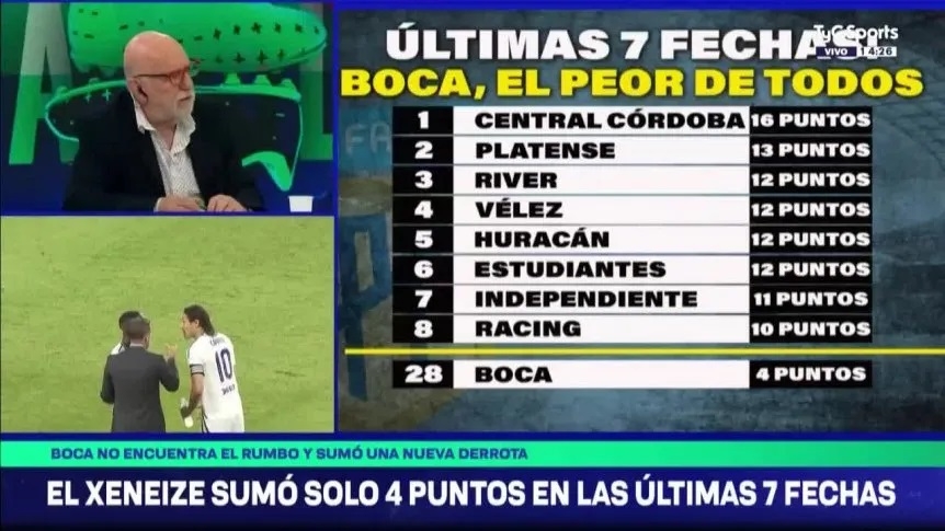 El dato concreto sostiene que la institución azul y oro tan solo cosechó cuatro puntos de 21 posibles: tres por la victoria contra Argentinos con Mariano Herrón en el cargo y uno producto del empate en La Bombonera contra Deportivo Riestra, resultado que colmó la paciencia de los hinchas del Xeneize.