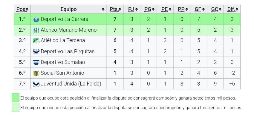 Próxima fecha, la 5ta.: Ateneo MM vs La Carrera, Juventud Unida vs Social San Antonio, Deportivo Sumalao vs La Tercena. libre: Las Pirquitas.