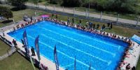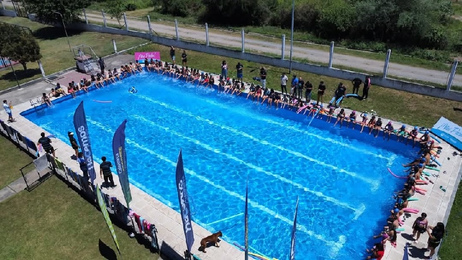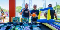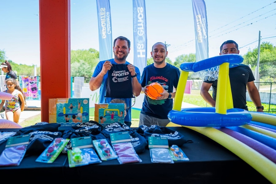 Antes de ingresar a la pileta, cada asistente recibió una mochila con antiparras y una gorra de baño. Además, para que también puedan utilizar en distintos juegos acuáticos, se entregaron inflables, como parte del acompañamiento de Deportes a las Colonias.