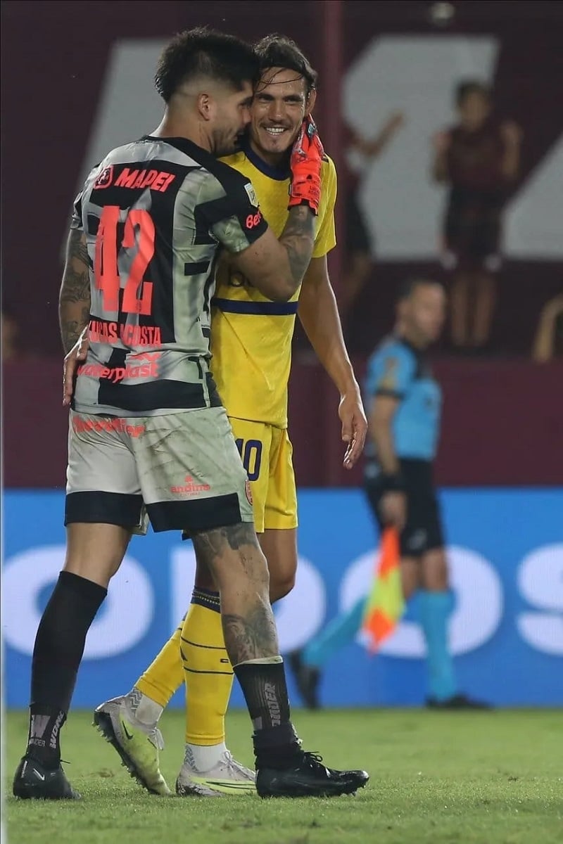 Corría el cuarto minuto de descuento cuando, tras un centro bajo desde la derecha, Cavani la empujó y la pelota dio en el palo izquierdo de Lucas Acosta. Estaba en posición adelantada y todo quedó anulado, pero eso no quita que el uruguayo sumó otra chance clara sin poder convertir. Tras la jugada, el arquero de Lanús se le acercó y le comentó algo al oído.