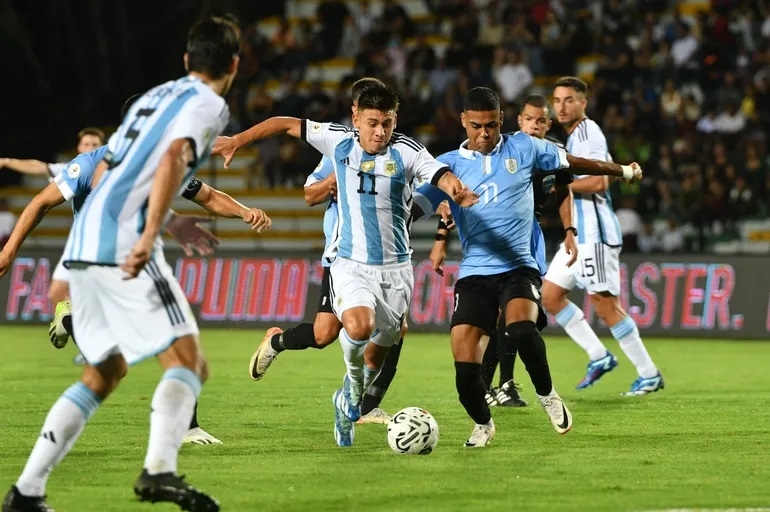 Argentina Sub 23 empató 3-3 con Uruguay en un infartante duelo por la quinta fecha del Preolímpico Sudamericano 2024. El conjunto albiceleste, que ya obtuvo el pase al cuadrangular final, consiguió ante los dirigidos por Marcelo Bielsa lo que era su objetivo primario: clasificarse en el primer puesto, lo cual consiguieron gracias a la caída de Paraguay contra Chile.