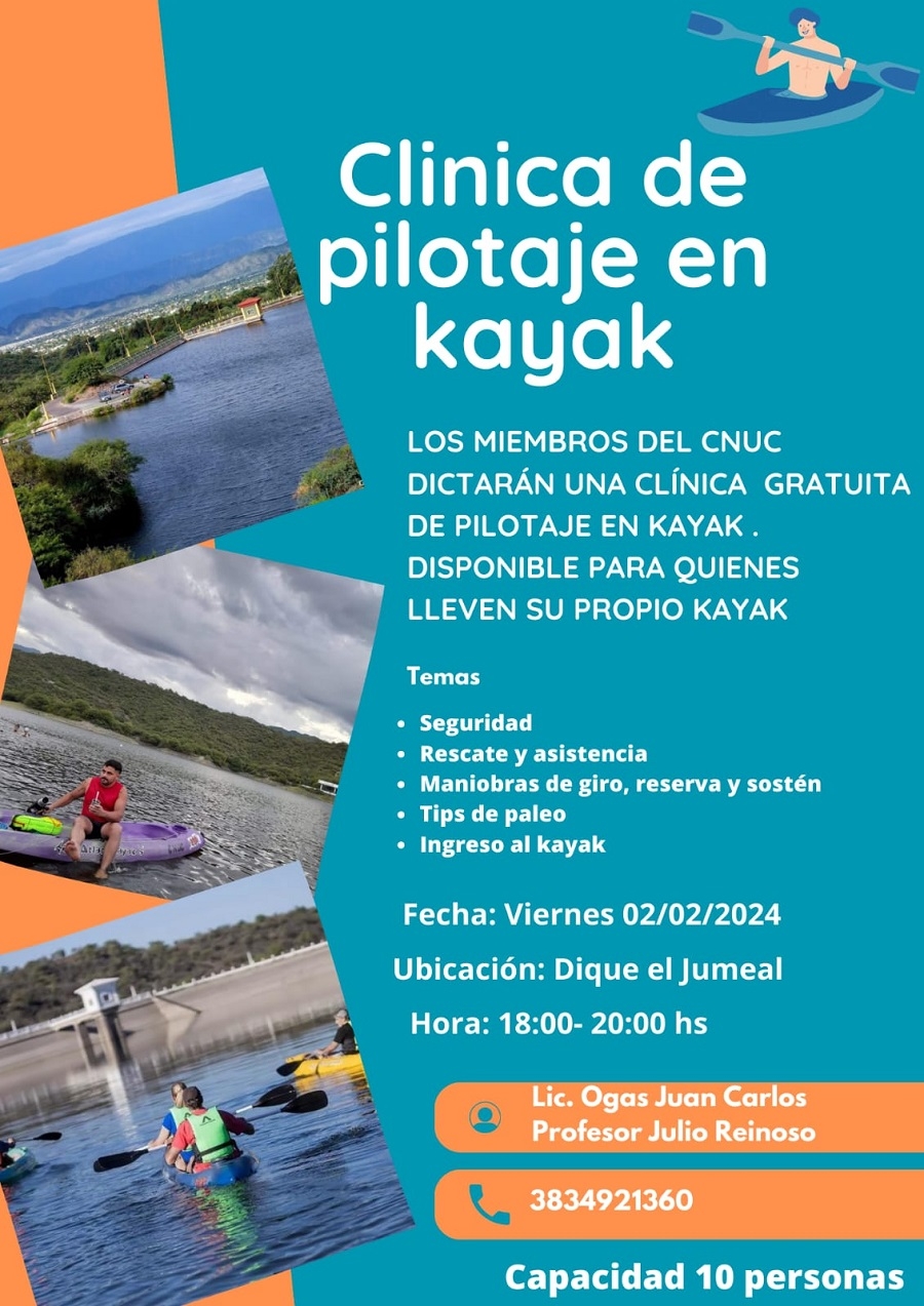 El taller estuvo a cargo del Lic. Juan Carlos Ogas y el profesor Julio Reinoso y estuvo destinado a miembros del club y externos con su propio kayak. Entre los temas abordados se menciona: normas de seguridad (chaleco o torpedo, sujeción del remo, silbato); pilotaje (paleo eficiente, maniobras, giro 360, reversa, movimiento lateral); re abordaje desde el agua (de proa, popa, lateral) y asistencias desde el kayak (acompañamiento en carrera, maniobras de rescate, salvataje con uno y con dos kayaks).