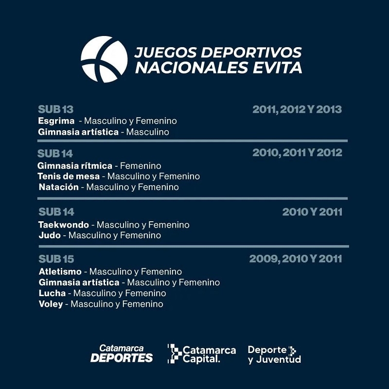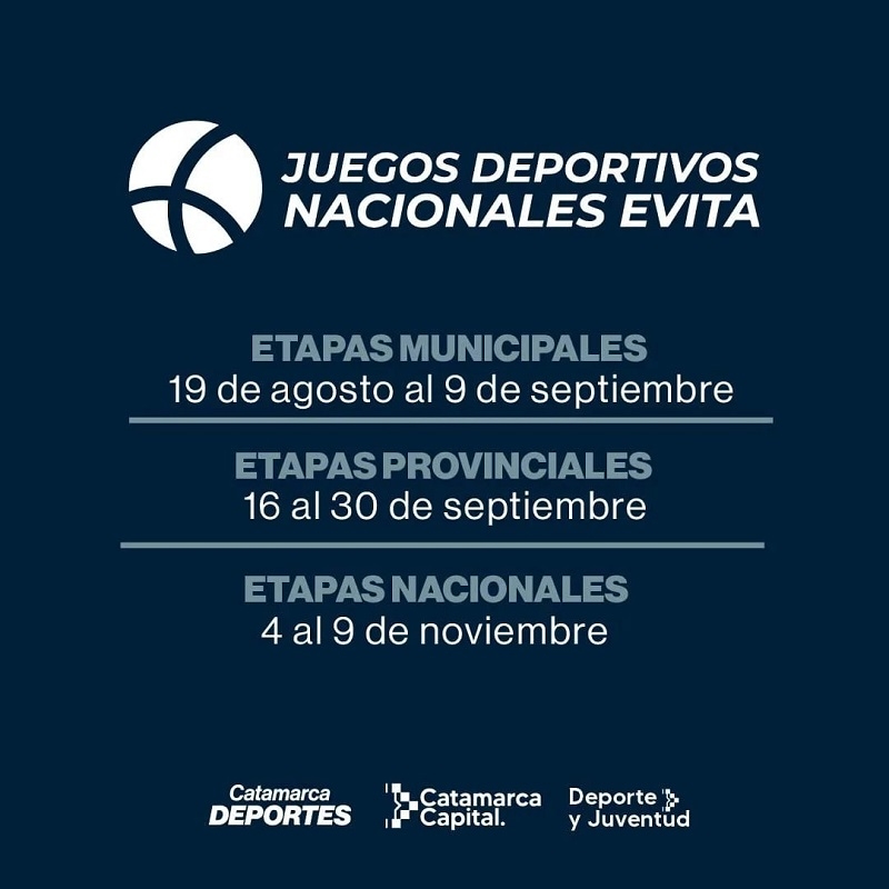 La etapa comenzará el 19 de agosto y se extenderá hasta el 9 de septiembre. Luego, los clasificados irán a una etapa provincia que es del 16 al 30 de septiembre. La etapa nacional será en Mar del Plata del 4 al 9 de noviembre.