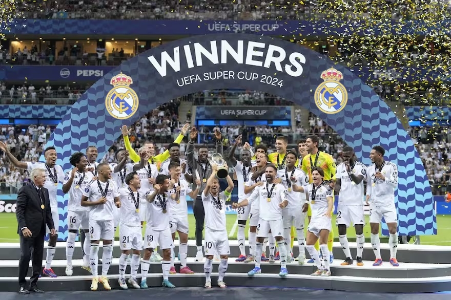 Real Madrid cumplió con lo esperado en el arranque de la temporada 2024/2025 y se quedó esta tarde con la Supercopa Europea, tras haber vencido 2-0 a Atalanta, vigente campeón de la Europa League, en Polonia. Federico Valverde (58’ST) y Kylian Mbappé (67’ST) hicieron los goles del equipo de Carlo Ancelotti, que consiguió su sexta supercopa para pasar a ser el equipo que más veces la ganó.