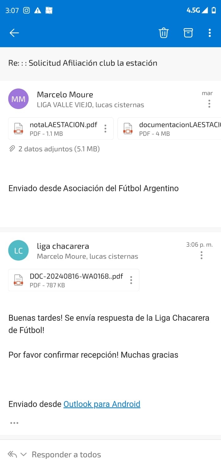 En nota cursada este viernes, como se había requerido desde CF, el presidente de la Liga Chacarera, Lucas Cisternas, y el secretario general Segundo Isaac Artero, describieron puntillosamente las razones de la postura chacarera, que, en resumidas cuentas, requieren de la aprobación de una Asamblea Extraordinaria del resto de los clubes asociados, tanto para aceptar la afiliación, como la desafiliación de una entidad.