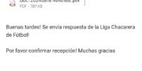 Puntualizan en los artículos 9no., 10mo y 11mo. del Estatuto y Reglamento General de la Liga Chacarera de Fútbol, las fundamentaciones de la respuesta oficial trasmitida al Secretario General del Consejo Federal del Fútbol Argentino, Sr. Javier Treuque.