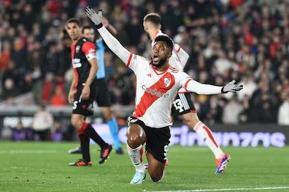 El partido fue chato en líneas generales y con pocas llegadas. En el primer tiempo, River solo pudo dos veces penetrar la defensa de Newell's con jugadas a pura precisión que empezaron por la izquierda y terminaron en remates de Colidio y Mastantuono: el primero remató bajo y cruzado, de fácil control para Hoyos, y el segundo elevó demasiado su tiro.