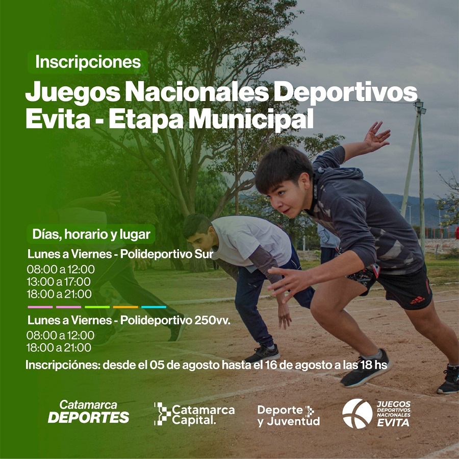Desde este lunes 5 de agosto hasta el 16 del mismo mes estarán a disposición las inscripciones para la etapa. Las escuelas, instituciones deporticas y demás podrán acercarse al Polideportivo Sur y al Polideportivo de las 250 Viviendas.