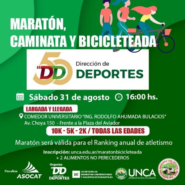 El evento se desarrollará el próximo sábado 31 de agosto a partir de las 16 hs., y cuenta con la organización de la Secretaría de Bienestar Universitario y Asuntos Estudiantiles, coordinación de la Agrupación de Atletas Veteranos de Catamarca y Fortaleza corre, ambas instituciones adheridas a ASOCat, que tendrá la responsabilidad de fiscalizar, ya que la competencia será válida para el Ranking anual de Atletismo. Además, el evento contará con una caminata familiar, y una competencia destinada a ciclistas.