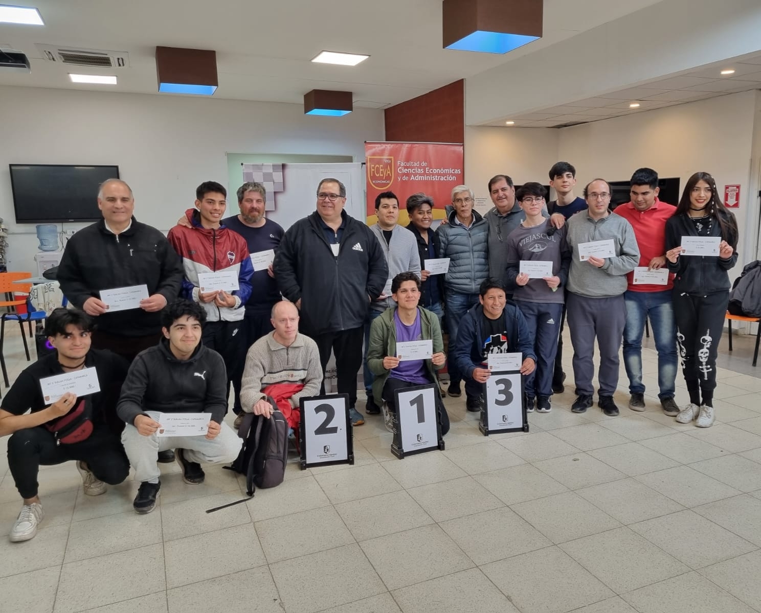La Comisión Directiva de la Asociación Catamarca Ajedrez agradece a la Facultad de Ciencias Económicas y Administración en la persona de su Decano CPN Gustavo Alfredo Lazarte, al Sr. Rector de la UNca. Ing. Oscar Arellano, al área de Bienestar y Deportes de la UNca, al personal del Comedor Universitario, al arbitraje AN Sol Jalil y Fernando Ocampo de Santa Maria, a los padres de los jugadores y profesores, a las distintas delegaciones de Salta, Tucumán, Santiago del Estero, La Rioja y a la más numerosa, el club Santa María Ajedrez que hicieron un gran trabajo de gestión para poder viajar.