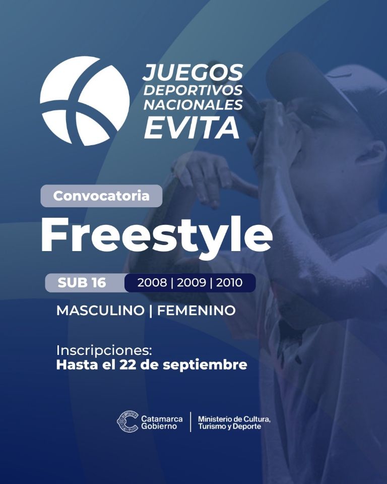La inscripción está destinada para la categoría Sub 16 (nacidos entre los años 2008, 2009 y 2010), se encontrará abierta hasta el 22 de septiembre del 2024. La misma, se realizará en forma digital, a través del siguiente enlace: https://bit.ly/evitafreestyleinscripcion