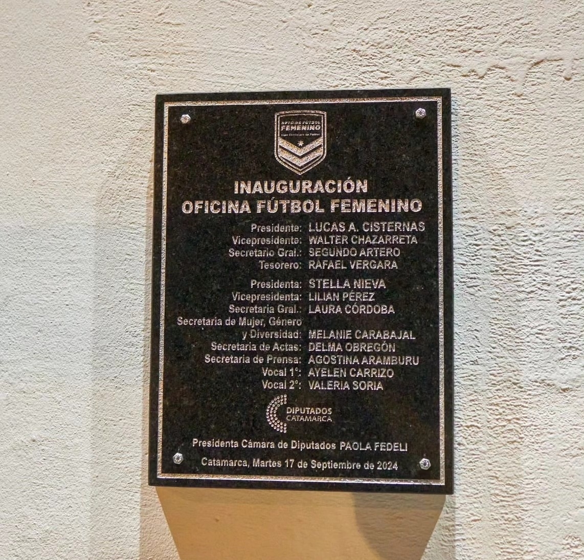 El gobernador Raúl Jalil acompañó al presidente de la Liga Chacarera, Lucas Cisternas, y a la secretaria general del Departamento de Fútbol Femenino, Stella Nieva, y la intendenta de Valle Viejo, Susana Zenteno, en la inauguración de las nuevas oficinas dedicadas a esta disciplina deportiva.