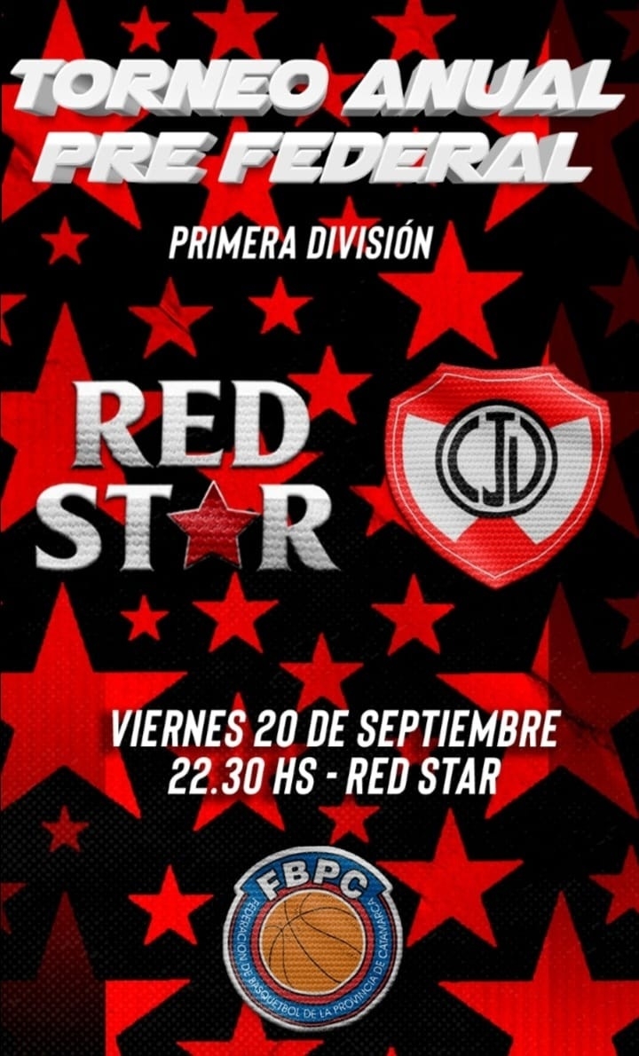Desde las 22.30, en este viernes 20 de septiembre, y haciendo de local en el Antonio Ricardo Bollea; Red Star recibirá a Juventud Unida de Tinogasta, por la 12da Fecha del Torneo Anual PreFederal de Primera División, que organiza la Federación de Básquetbol de la Provincia de Catamarca.