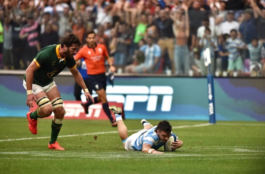 PUNTOS EN EL PRIMER TIEMPO: 3’ Try de Aphelele Fassi convertido por Handre Pollard (SA), 8’ Try de Jesse Kriel convertido por Handre Pollard (SA),13’ Penal de Handre Pollard (SA), 14’ Try de Mateo Carreras convertido por Tomás Albornoz (LP), 22’ Try de Pablo Matera convertido por Tomás Albornoz (LP), 26’ Try de Joel Sclavi (LP), 35’ Try de Tomás Albornoz convertido por él mismo (LP), 39’ Try de Cobus Reinach (SA).
