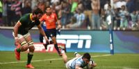 Los dirigidos por Felipe Contepomi tuvieron un mal arranque, que los Springboks aprovecharon para distanciarse 17-0 con tries de Aphelele Fassi (4m.), Jessel Kriel (8m.) más dos conversiones y un penal de Handré Pollard (12m.).