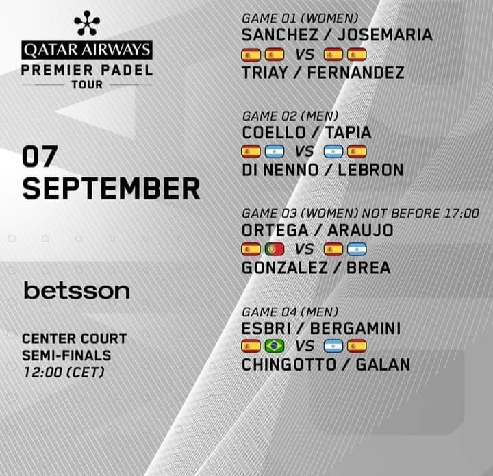 Las semifinales, para los líderes del ránking mundial, será en Sábado, desde las 9.00 de nuestro país, ante la pareja 3 del escalafón: compuesta por el argentino Martín Di Nenno y el español Juan Lebrón, en cotejo que será transmitido en VIVO por Disney+, en su versión Premium.