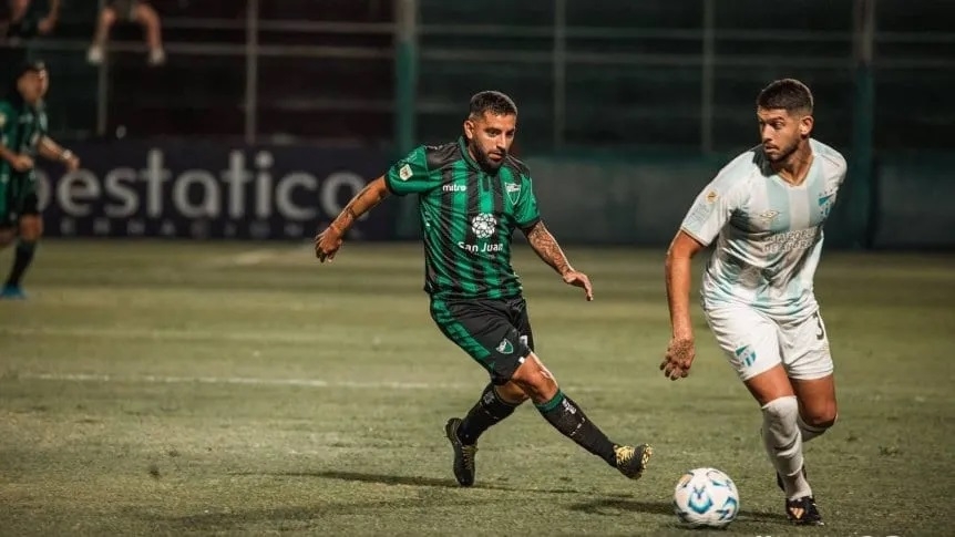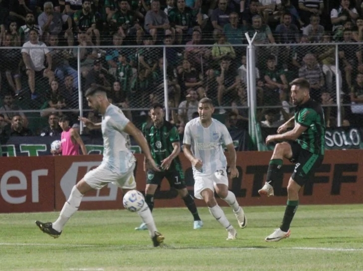 Alejandro Molina cabeceó, pero el palo le negó el gol a San Martín de San Juan.Alejandro Molina cabeceó, pero el palo le negó el gol a San Martín de San Juan.