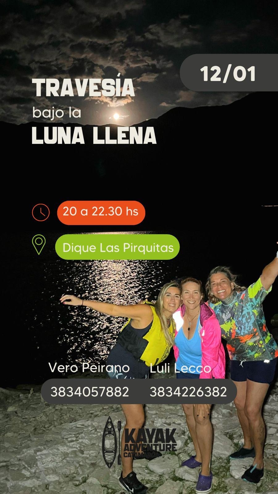 En el primer caso se trata de la tradicional “Travesía en Kayak”, programada para este domingo 12, entre las 16 y las 18.30 hs., en el dique de Las Pirquitas, departamento Fray Mamerto Esquiú, donde, por la noche, de 20 a 22.30 hs., se prevé la más excitante primera "Travesía Bajo la Luna Llena"